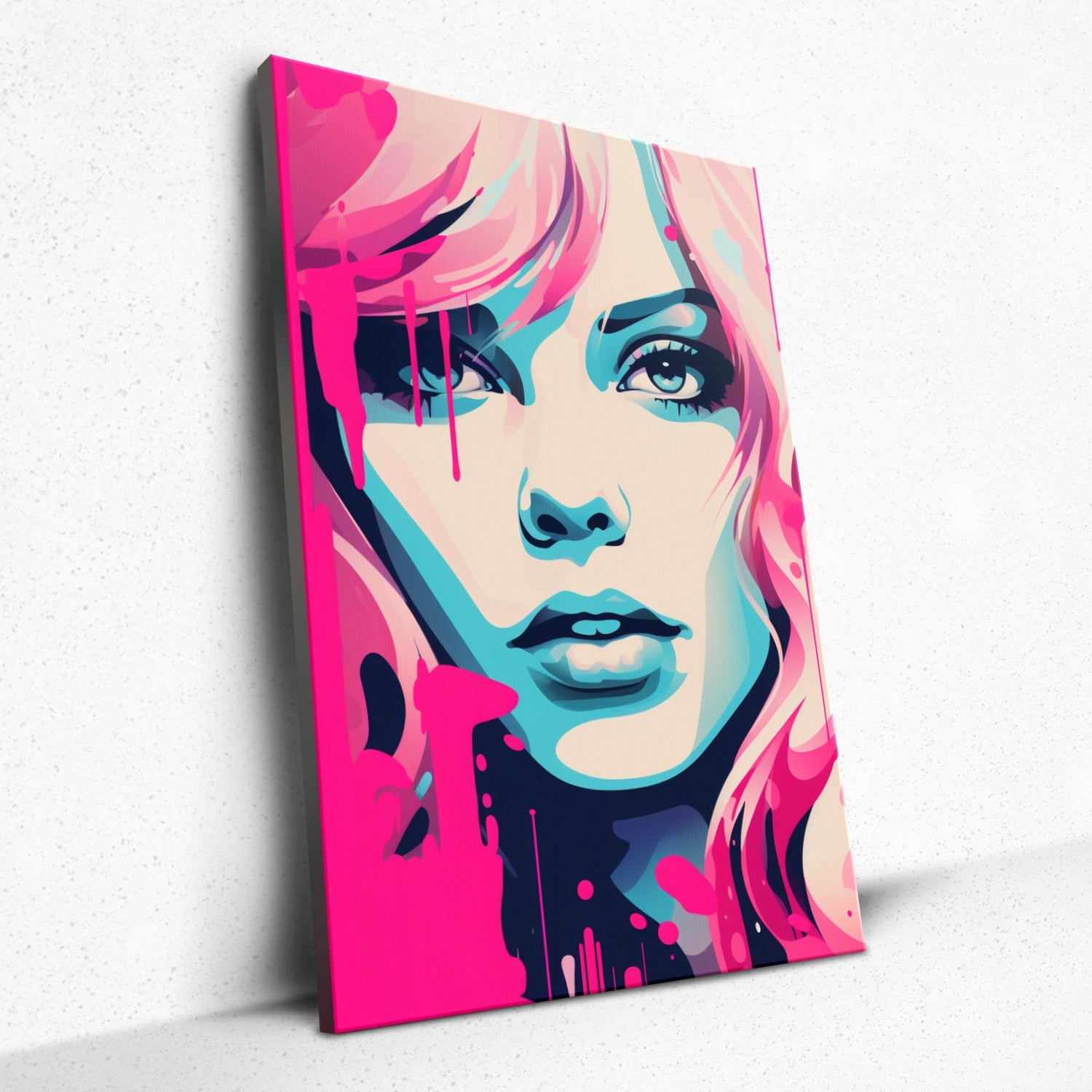 • Introducing "Neon Muse" from Rivera Realms, a celebration of modern allure. Through stark contrasts of pink and blue, this pop art captures the essence of feminine beauty in a contemporary palette. The bold colors and minimalistic approach playfully dance between vintage nostalgia and modern aesthetics. An irresistible talking point for any room, let her vibrant allure elevate your space into a realm of chic sophistication. Revel in the colors, revel in the style.