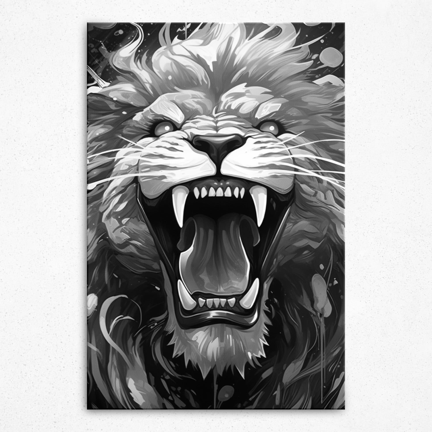• Experience the 'Spectral Savanna Serenade', where untamed majesty meets a kaleidoscope of emotion. Rivera Realms, in its signature style, has blended the ferocity of the lion with an arresting palette of blue, pink, and orange. The roar isn't heard; it's felt, echoing in colors that pulse with fervor and fantasy. Let your space resonate with passion and artistry, with a piece that sings of wild dreams and infinite horizons.