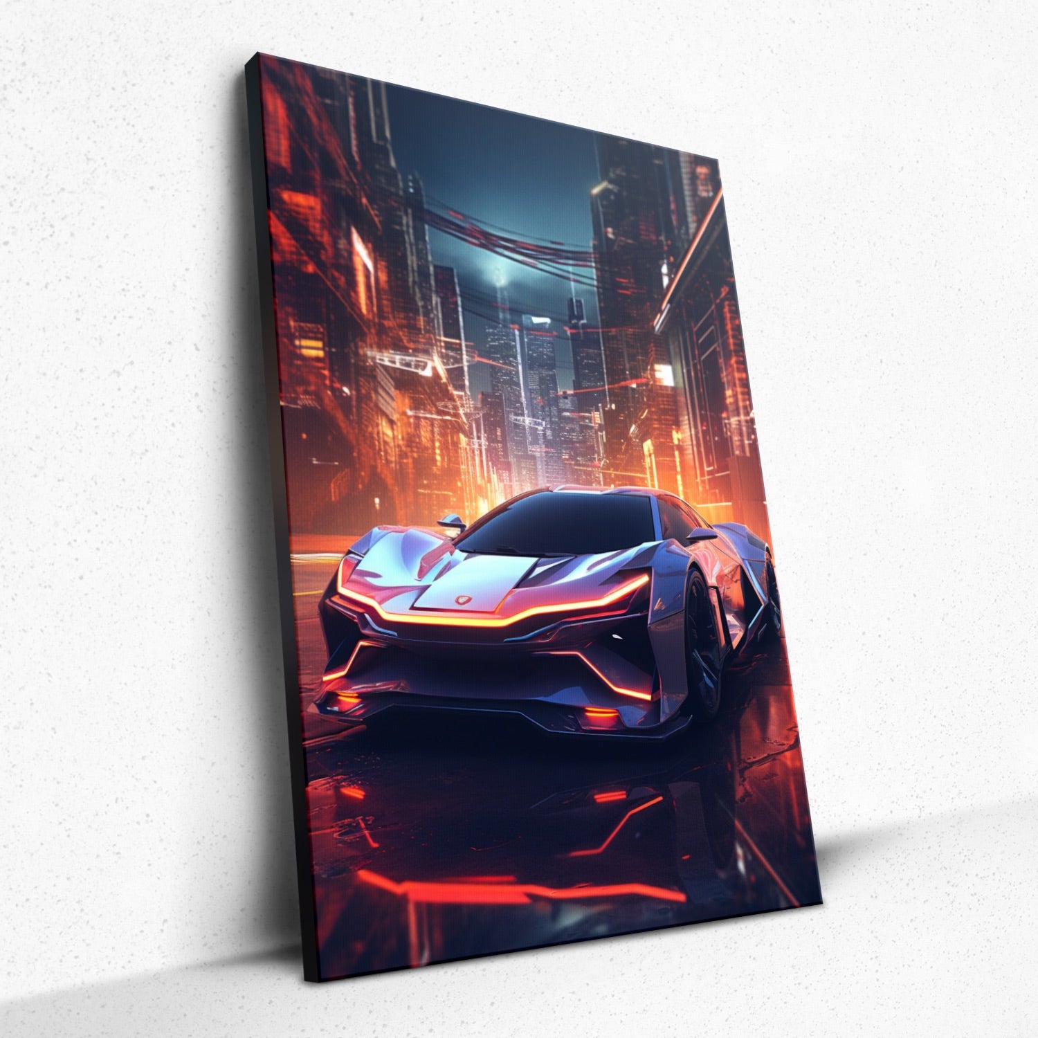 • Dive into "Urban Majesty," the latest masterpiece from Rivera Realms. At the intersection of luxury and urban energy, this art piece exquisitely captures a Lamborghini Terzo, the epitome of opulence, bathed in the warm, mesmerizing embrace of a city street's orange glow. The busy city life forms a contrasting backdrop, adding depth and dynamism. Perfect for those with a taste for luxury and a love for the city's heartbeat, this print adds an exhilarating splash of sophistication to any space. Experience the city's allure, reimagined.