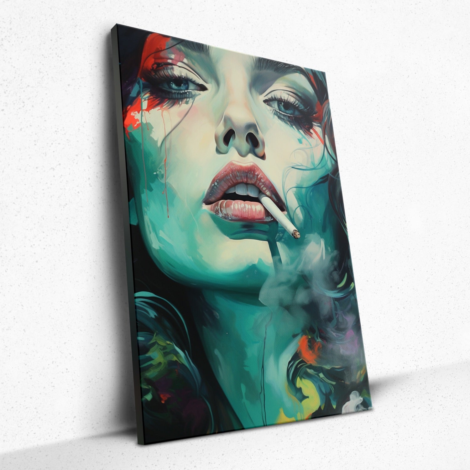 • Dive into the 'Verdant Enigma', where shades of green dance around an eccentric, mysterious woman lost in smoky reverie. Rivera Realms paints passion and enigma, drawing you into the depths of her gaze and the wisps of her exhale. Experience a journey of emotion, wrapped in hues that both soothe and provoke. In this masterpiece, raw authenticity meets unparalleled artistry, beckoning every viewer to explore and feel deeper.