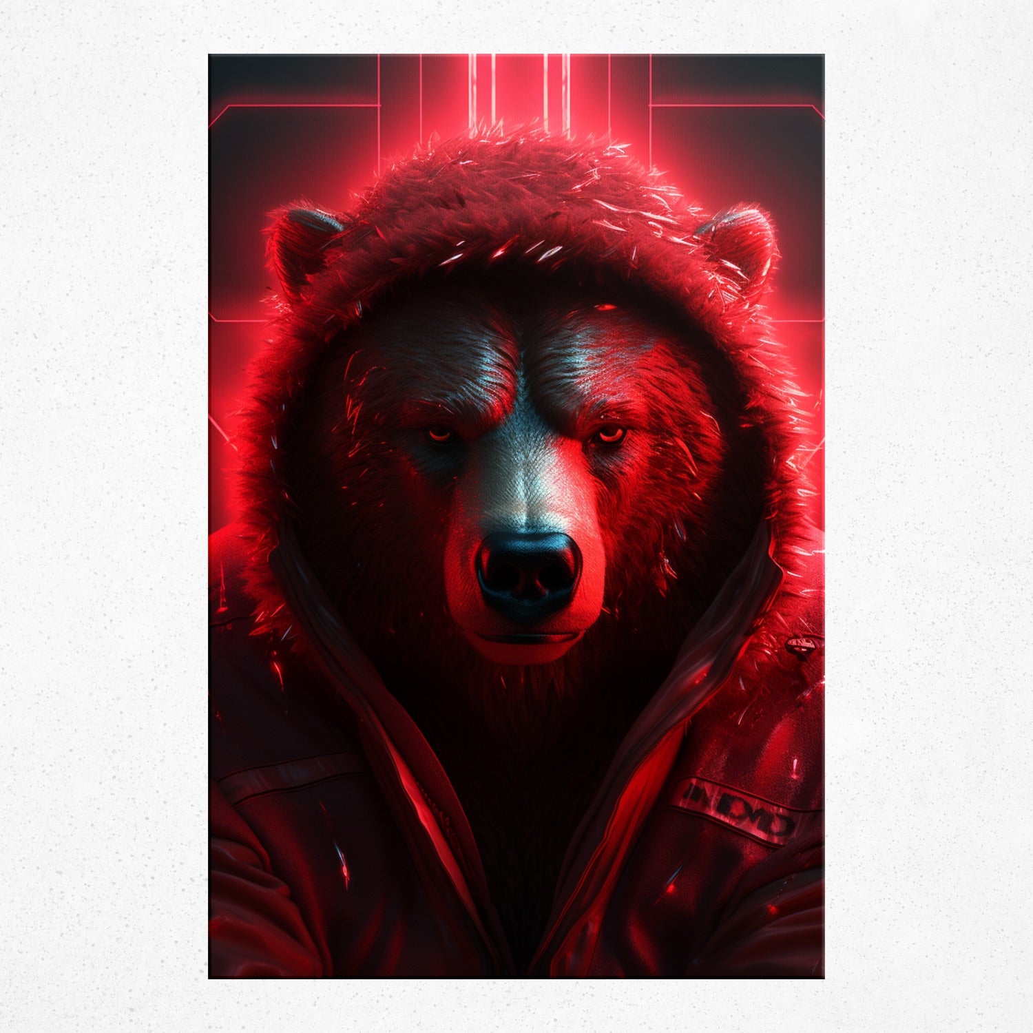 • Dive into the depths of "Crimson Cloak" from Rivera Realms, where fury meets fashion in a juxtaposition of raw power and contemporary style. An imposing black bear, animated with palpable rage, dons a winter hoodie, both a symbol of modernity and a protector against nature's chill. The fiery red hue that illuminates this majestic beast captures a spirit untamed, yet touched by the hand of human influence. An audacious statement for any space, this piece brings the wild heart of nature right into your room, demanding attention and reverence.