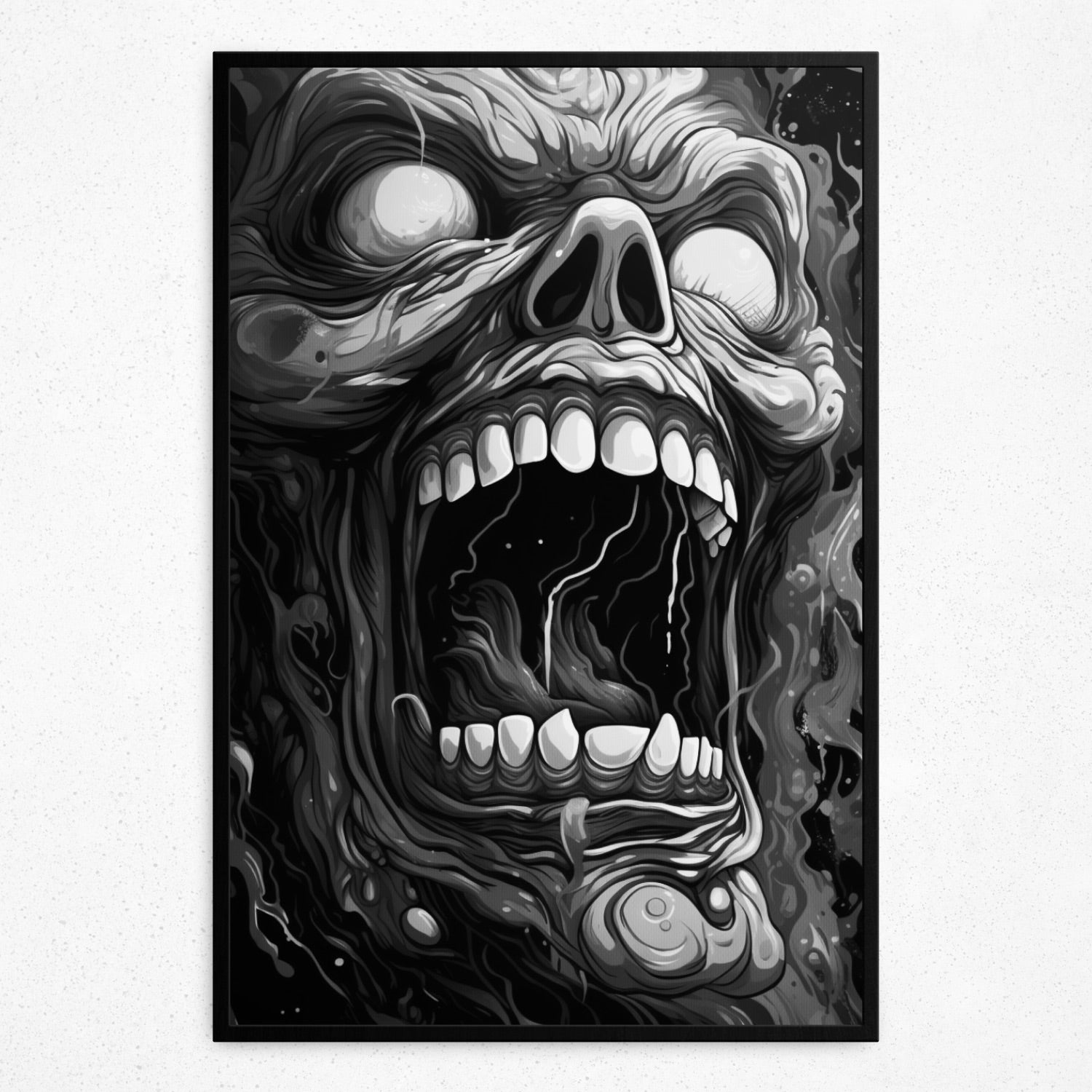• Introducing "Decay's Paradox" from Rivera Realms, a piece that daringly pushes the boundaries of conventional art. Vivid and unsettling, this digital rendering captures the raw, untamed beauty of deterioration, with yellowed teeth and eyes peeking through decomposing flesh. Embrace the eerie allure of life's inevitable decay, finding beauty even in the morbid. Perfect for those seeking a truly unique centerpiece, this artwork is a testament to the transient nature of existence and the fascination that lies within.