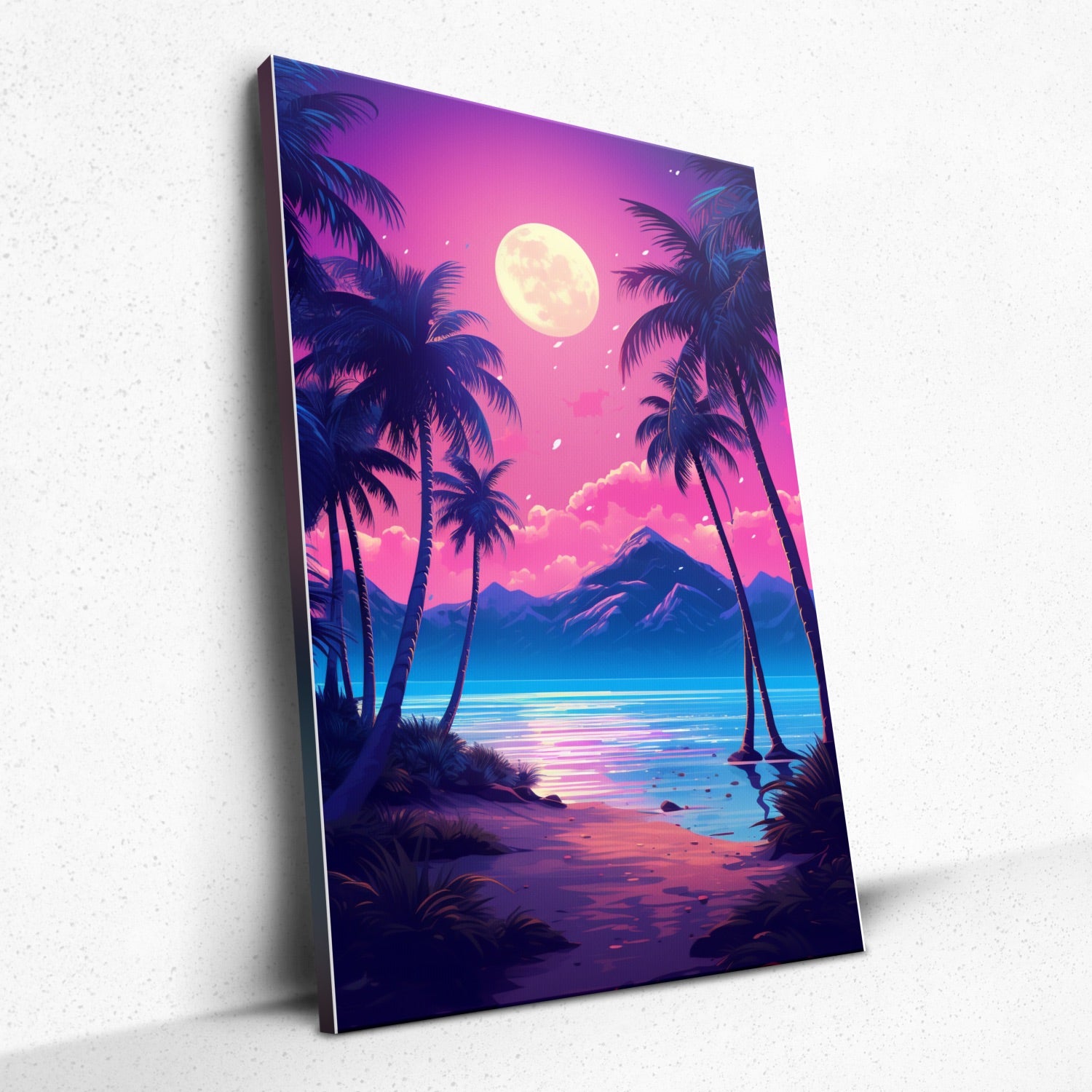 • Introducing "Serene Tideland," an entrancing creation from Rivera Realms that instantly transports you to a moonlit tropical paradise. The harmonious dance of pink and blue hues captures the essence of a calm shore, kissed by the gentle embrace of the light yellow moon. It's an invitation to breathe, to dream, to lose oneself in the poetic balance of nature's colors. Let this piece infuse your space with tranquility, evoking the magic of moonlit shores and silent serenades.