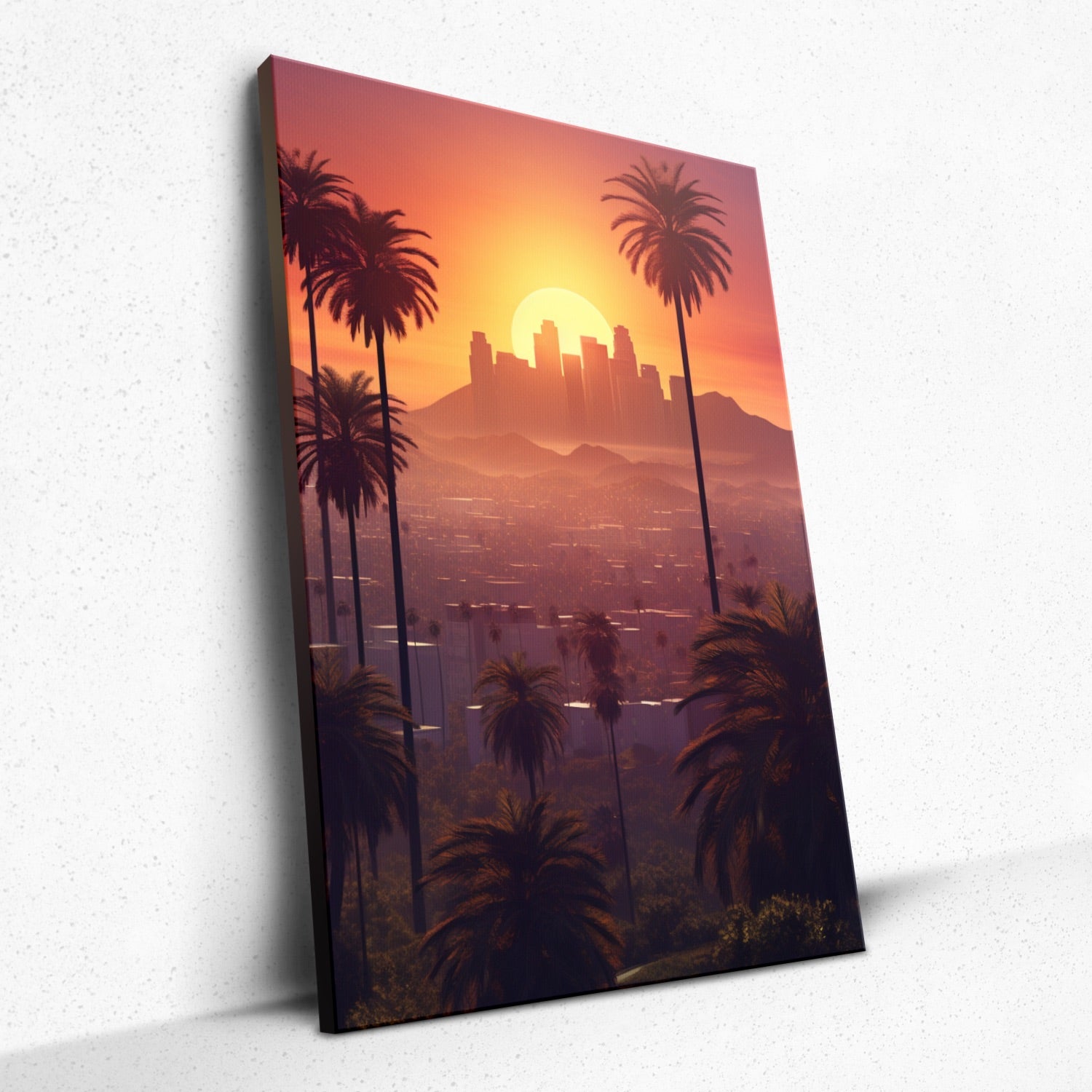 • Embrace the calming allure of "Tropic Haze Serenade" by Rivera Realms. Capturing a hazy sunset over a sleepy city, this piece transports viewers to a tranquil tropical escape. The soft, muted tones evoke a sense of nostalgia, while the city's silhouette whispers tales of urban dreams. Ideal for those who seek solace in the embrace of dusk, it offers a serene respite from the bustle. Let your room bathe in the gentle glow of this mesmerizing tropical twilight.